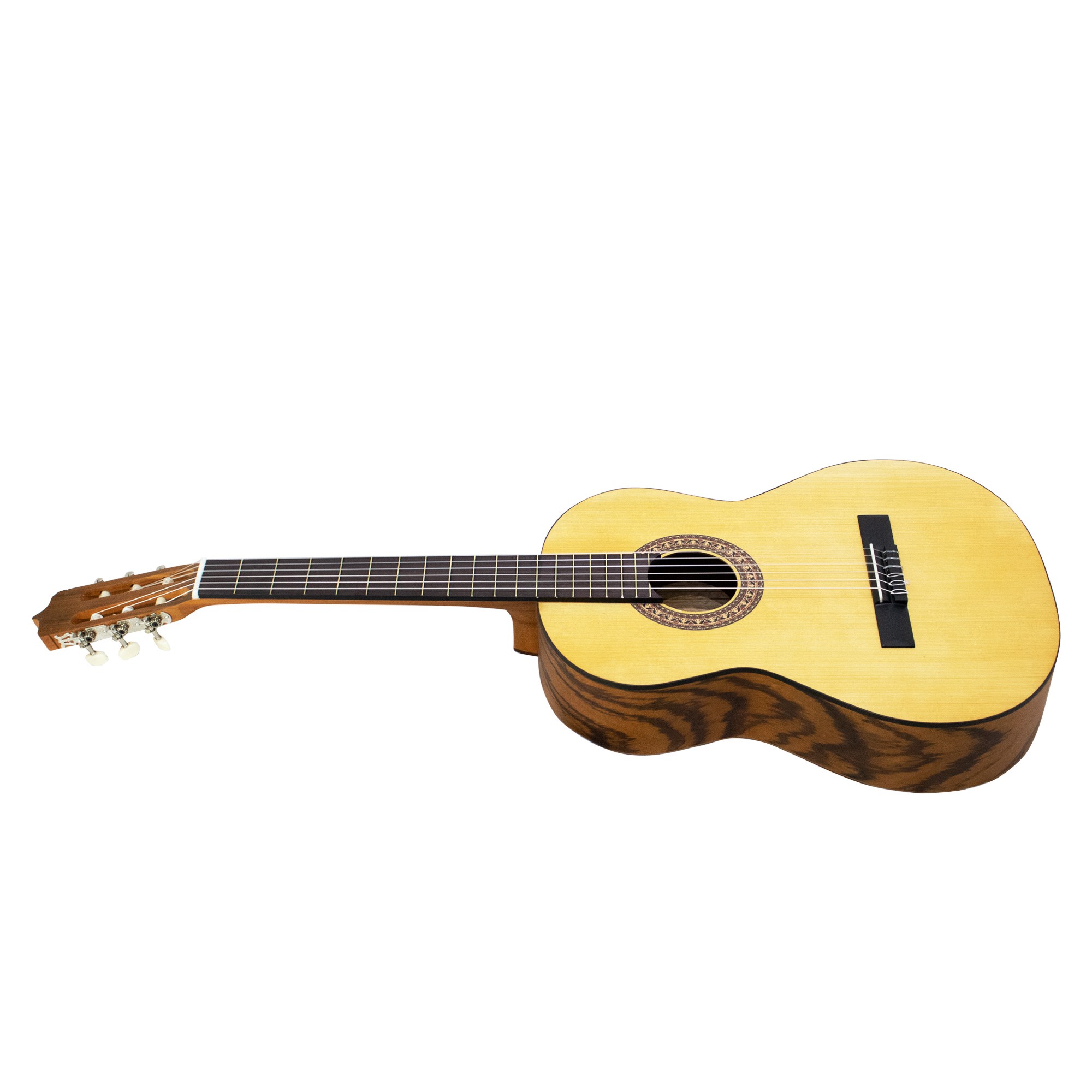 چوب صنوبر به دلیل انعطافپذیری و رزونانس بالا، صدایی روشن، واضح و قدرتمند تولید میکند که برای موسیقی کلاسیک و فلامنکو بسیار ایدهآل است.